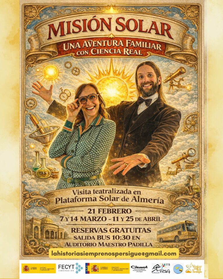 ¿Quieres pasar una mañana de ciencia entretenida? En esta aventura familiar conoceréis los secretos de la energía solar de la mano de dos personajes históricos. Un recorrido por la Plataforma Solar de Almería como nunca nadie antes te lo había contado.